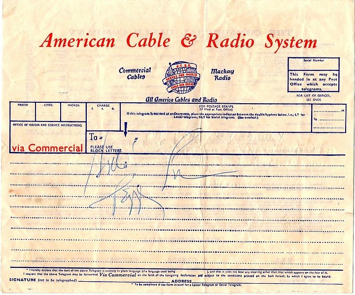 4 Autograph on AC&R cable pad of the singer, Peggy Lee